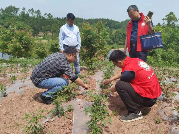 在铜梁区太平镇坪漆村,团队负责人黄科博士联合重庆果之王园艺有限公司陈贵虎总经理,针对桃树夏季抹稍和病虫害防治进行技术指导和管护培训。在荣昌区远觉镇,团队负责人黄科博士,李会合教授、单德鑫副教授,和荣昌区农业技术推广站李启波研究员,针对当地辣椒产业开展了种植技术培训。